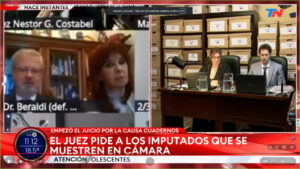 «Advierto que no todos los imputados aparecen en cámara. El Tribunal debe velar por la presencia de todos, les pido a las personas que no aparecen en cámara que lo hagan y arbitren las medidas necesarias para que yo los pueda ver», expresó el juez.